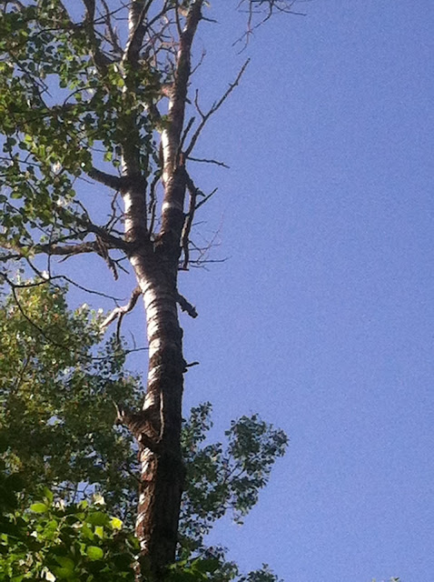 There is a bird family in the tree just north of our firepit. Sapsucker, I think. Don't know yet. They have a perfectly round entrance to their nest in this dead old popal. I listen for the fluttery screeches, hoping for a photo op of the sweet family.